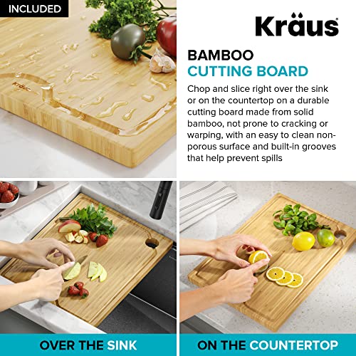 - SINK KIT INCLUDES: Stainless steel kitchen sink, heavy-duty acacia cutting board, roll-up dish drying rack, matching protective bottom grid, drain assembly, and decorative drain cover