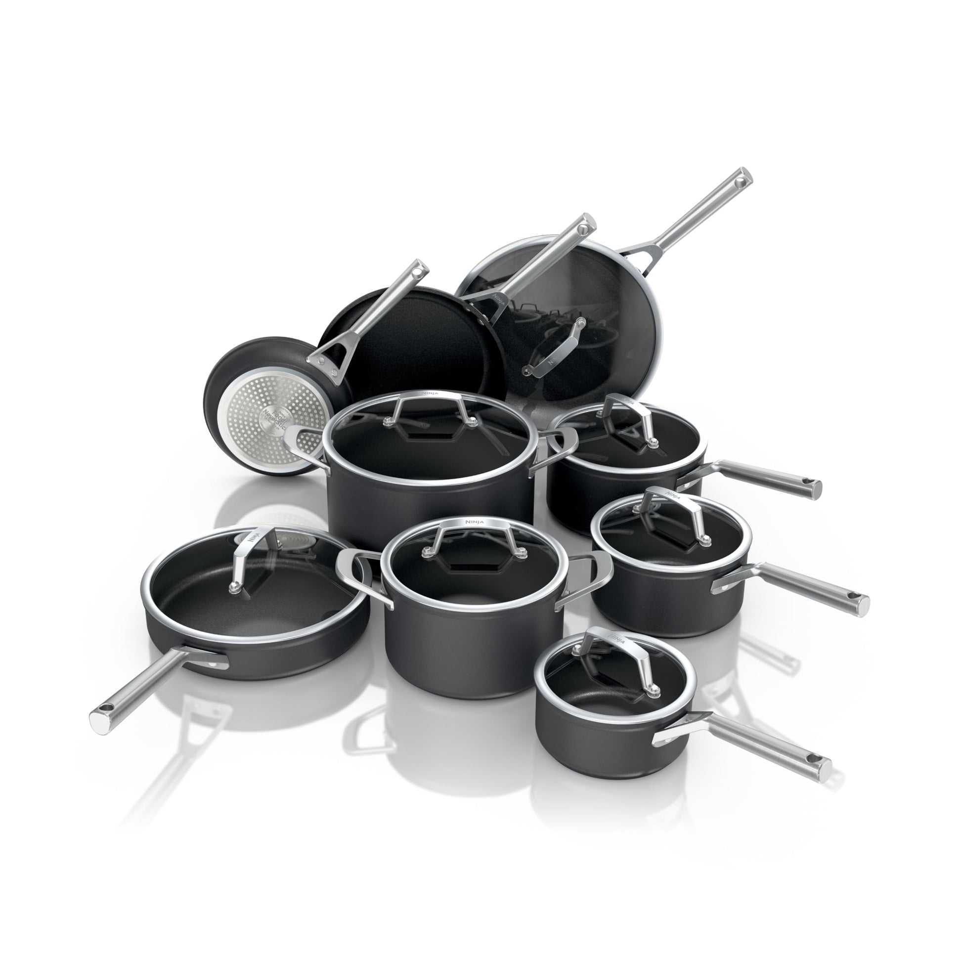 - HARD-ANODIZED EXTERIOR: This premium cookware has an extremely durable shot-blasted, hard-anodized exterior that resists scratches like stainless steel.