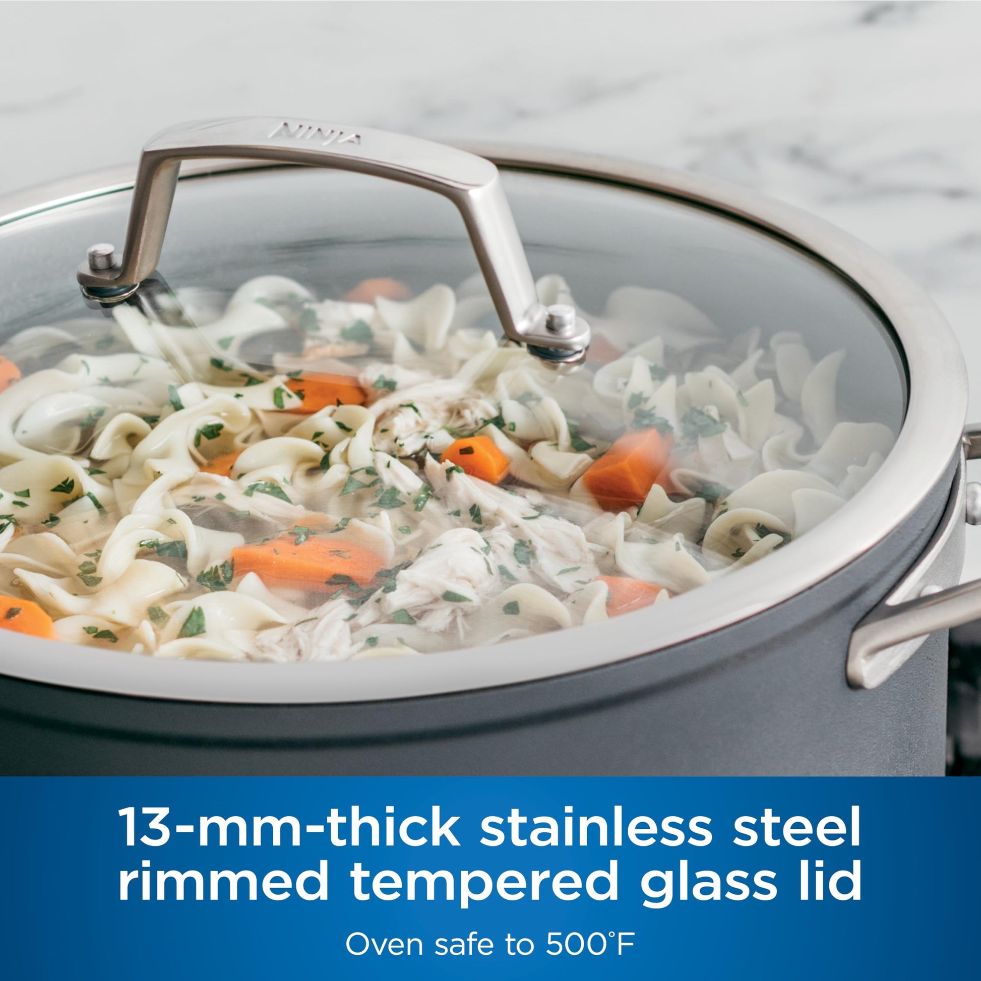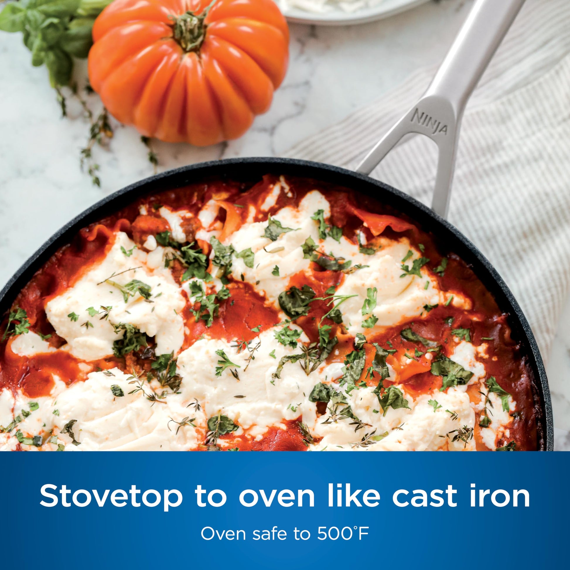 Details: Ninja Foodi NeverStick Premium Cookware is the cookware that won’t stick, chip, or flake. With a max manufacturing temperature of 30,000°F, our cookware won't rapidly lose nonstick like traditional pans made at 900°F can. Our coating is oven safe to 500°F, free of PFOA, cadmium, and lead, plus metal-utensil and dishwasher safe.