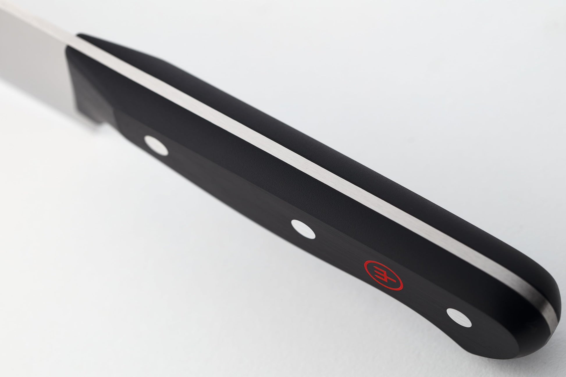 Details: Our Gourmet line offers superb value and quality. Unlike the visually similar Classic line, Gourmet is a precision laser-cut stamped line. This production method results in a lighter more economical version of its forged counterpart. Family owned and operated since 1814, WÜSTHOF embodies the highest levels of tradition, craftsmanship and quality. Every piece of WÜSTHOF cutlery is meticulously crafted in Solingen, Germany and carries the Solingen name, a designation reserved for products that meet the strictest quality standards and whose manufacture takes place within the city limits.